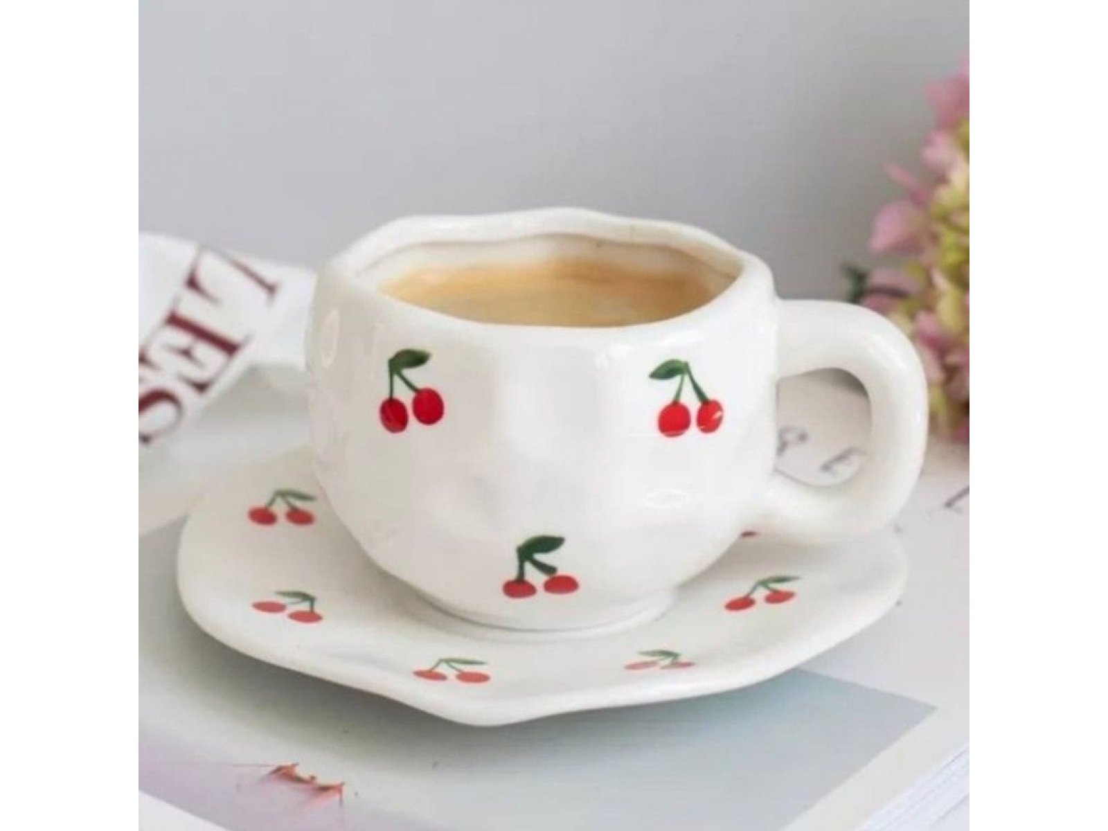 Set cana cu farfurioara, Cherry, 300ml